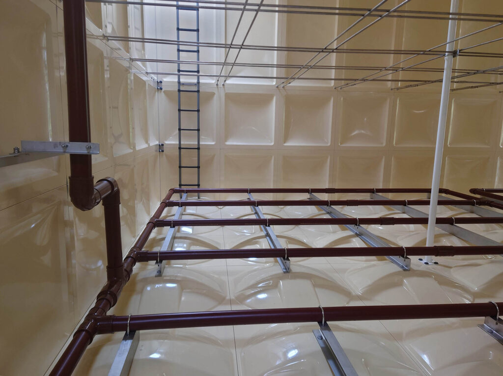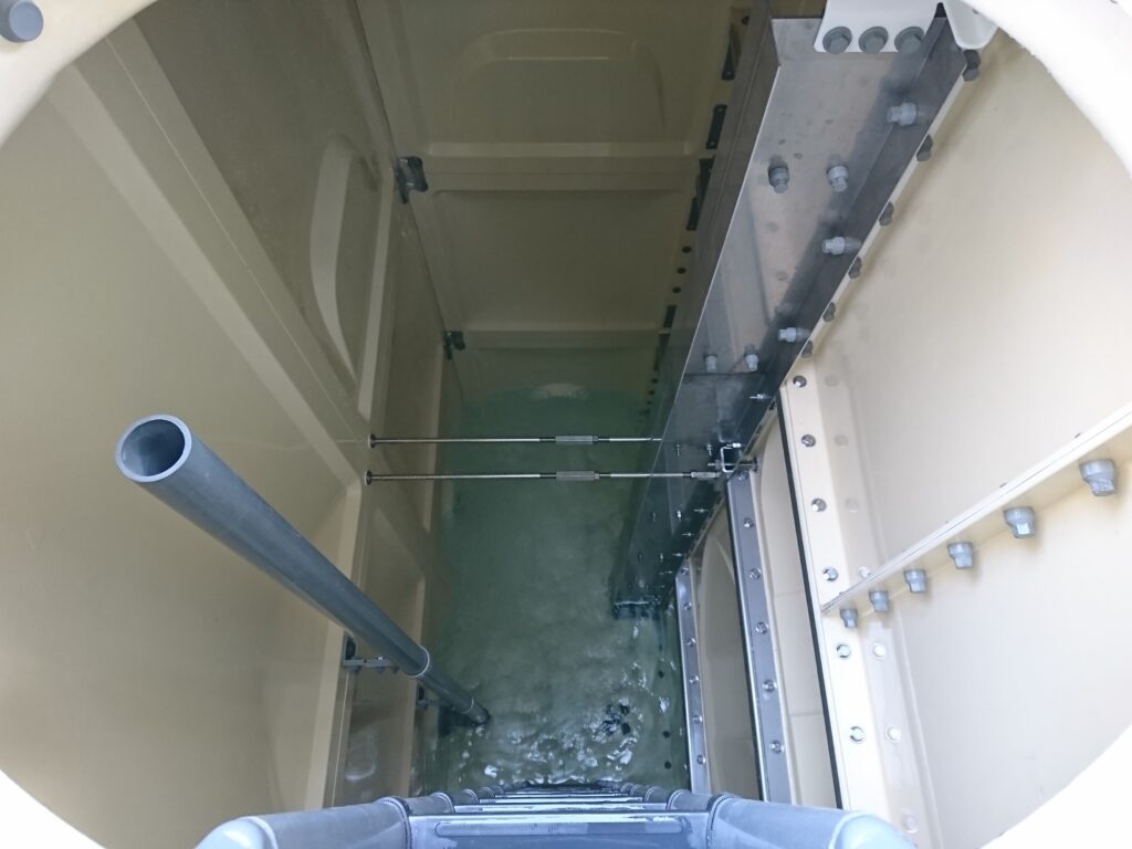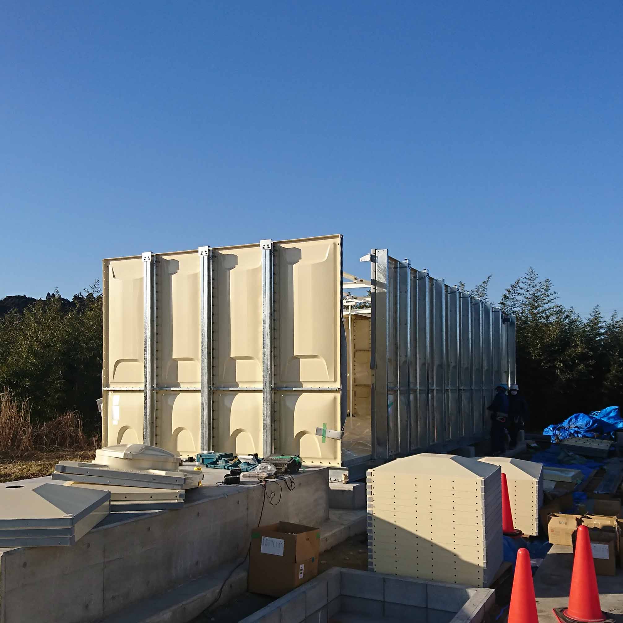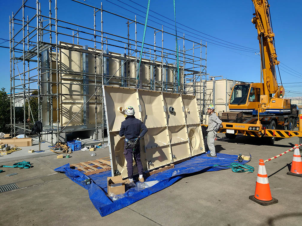 - 複数枚のパネルをボルト接合で一体化の水槽にします