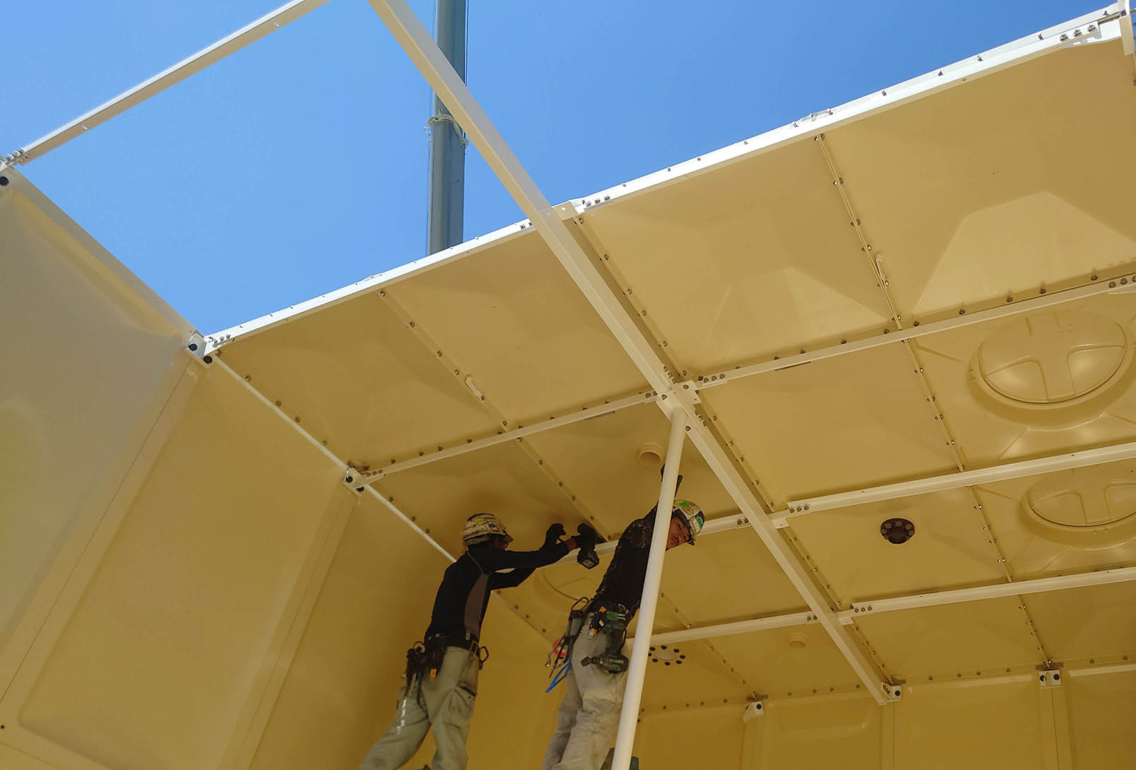 - FRPパネルタンク組立施工